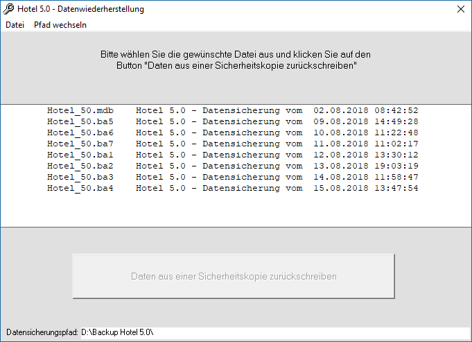 Starten Sie das Programm "Hotel 5.0 - Datenwiederherstellung"